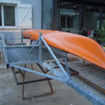 J ai acheté l'essieu et les 3 roues,le principe c'est d'avoir une remorque modulable,la plaque avec les stikers s'enlève et je rajoute juste qu'a 2 étages de kayaks en plus et voila le travail