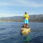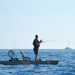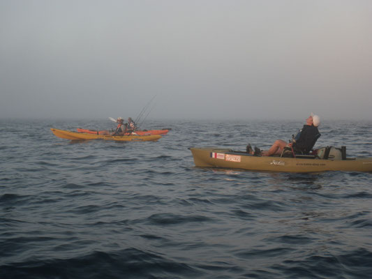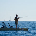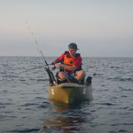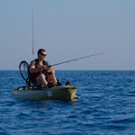 Nuit très humide, lever 5 h sur le même spot avec pour objectif un joli plateau à 3 milles des cotes. La météo est top, on tente le coup....c'est loin très loin...Finalement spot pas terrible pour le kayak, le plateau est trop large il faut trop se déplacer. Sur une jolie dérive je touche un très gros poisson que je ne peut absolument pas arrêter en 30 LBS et paf à trou obliger de casser sans doute un beau Mérou. Finalement personne ne sort de poisson sur la matinée nous décidons de rentrer et c'est loin encore plus loin...