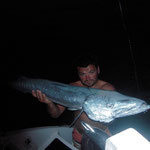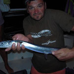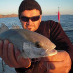 A noter une tres belle touche sur un madai qui malheureusement se terminera par une casse( fluoro coupé net) sans doute un poisson sabre venu lui aussi profiter...