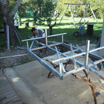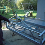 Ne trouvant pas dans le commerce une remorque qui me convienne, j'ai décidé de la fabriquer avec l'aide de mon ami Tony ferronier de son état.