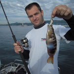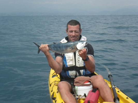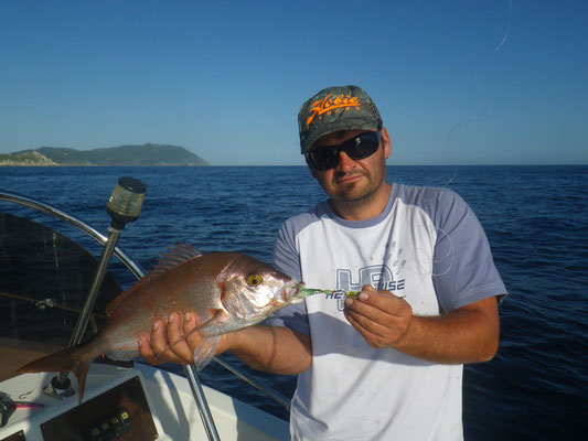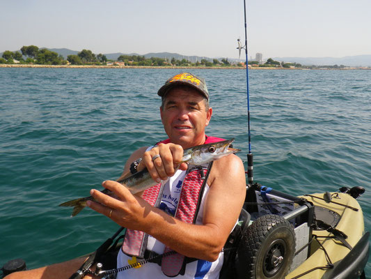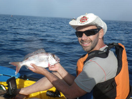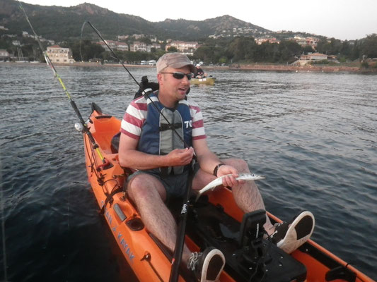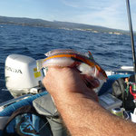 C'est Benoit qui ouvre avec un petit pageot c'est son premier poisson à l'inchiku et en Kayak.Bravo à toi.