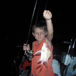 Baptiste se débrouille comme un chef,il pompe les poissons comme un grand.Son pére n'est pas en reste et une quinzaine de poissons seront sortis et largement autant de décrochés....