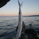 Salut à tous, entre la météo, le travail et la déprime post guadeloupe....Enfin une petite sortie pour ne pas perdre la main. Réveil 5h30 il fait -2° à Signes,un petit café et direction le port avec mon pote Philippe: objectif tester un nouveau spot que j 'ai repéré au sondeur le mois dernier. On commence par chercher les calmars sans succes. En revanche les sabres sont là,coupe nette à la descente pour Philippe bilan: 2 turluttes et un inchiku à la flotte. Ca part bien cette histoire en plus franchement ça caille... Changement des bas de ligne et nouvelle derive. Je me prends une très belle tape ferrage tardif je l'avoue et décroché. Le spot semble bon on insiste je passe au jig et bingo une belle tape et c 'est mister Denti qui monte au bateau. Voila il est temps de rentrer se mettre au chaud. Une jolie petite sortie fraiche mais avec un superbe lever de soleil merci à philippe pour le bateau.